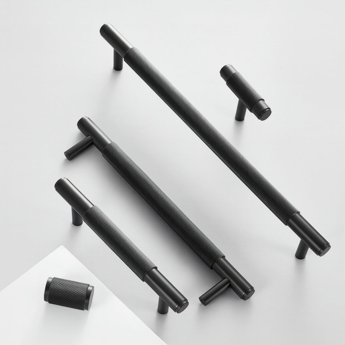 Black handle in solid brushed brass with an elegant ribbed surface – one of our most popular products! This modern handle in brass combines style and functionality, making it a perfect solution for kitchen cabinets, bathroom vanities, and furniture. Its substantial weight and carefully crafted ribbed details provide a distinct and exclusive feel that doesn’t go unnoticed. This premium handle is designed for those who appreciate quality and detailed craftsmanship that enhances both the look and experience of your home.