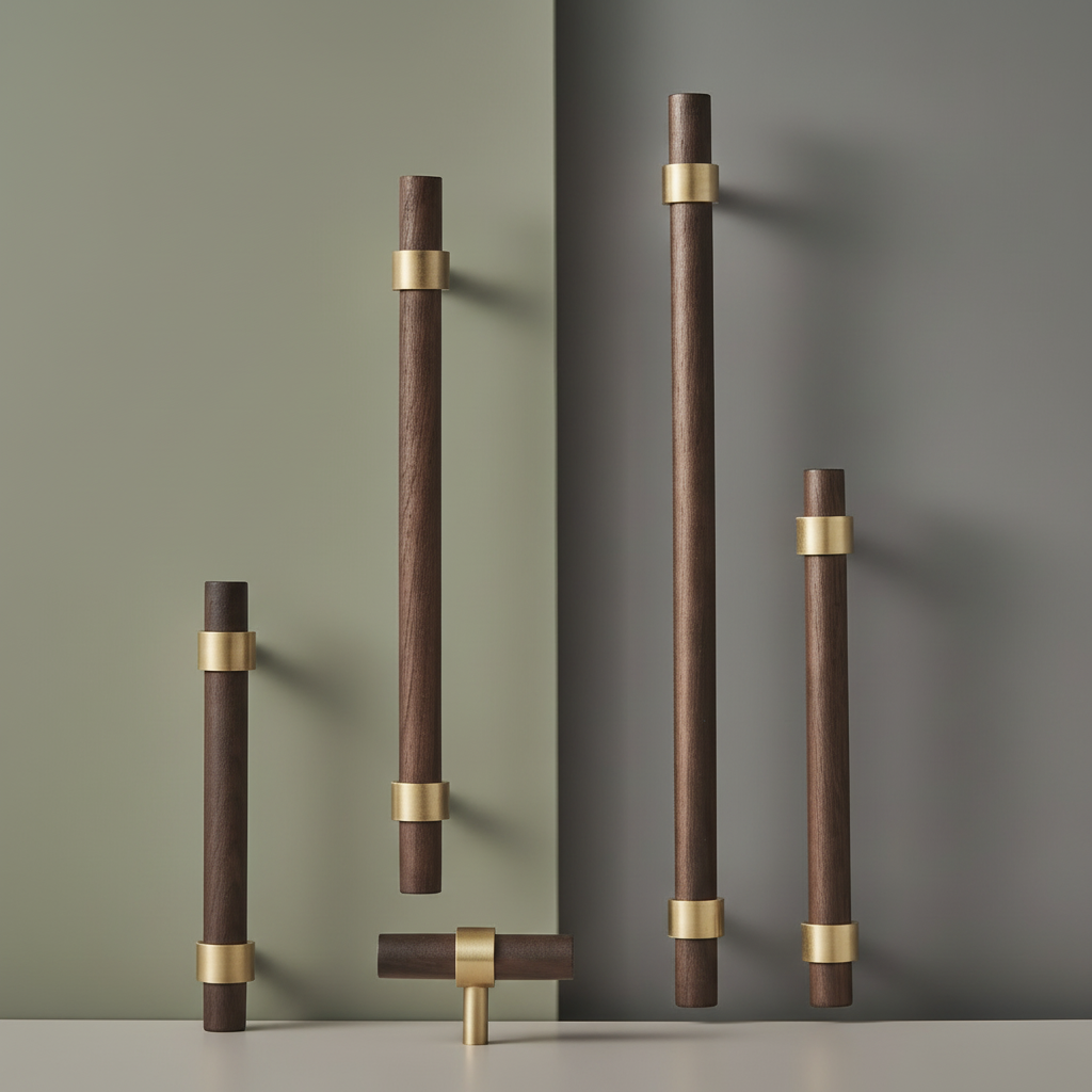 Dieser Griff aus Walnuss strahlt eine warme und natürliche Atmosphäre in Ihrem Zuhause aus. Das klassische Design mit Befestigungen aus massivem Messing verleiht sowohl Küchen als auch Möbeln eine elegante Note. Wir bieten auch eine passende T-Bar in derselben Serie an.