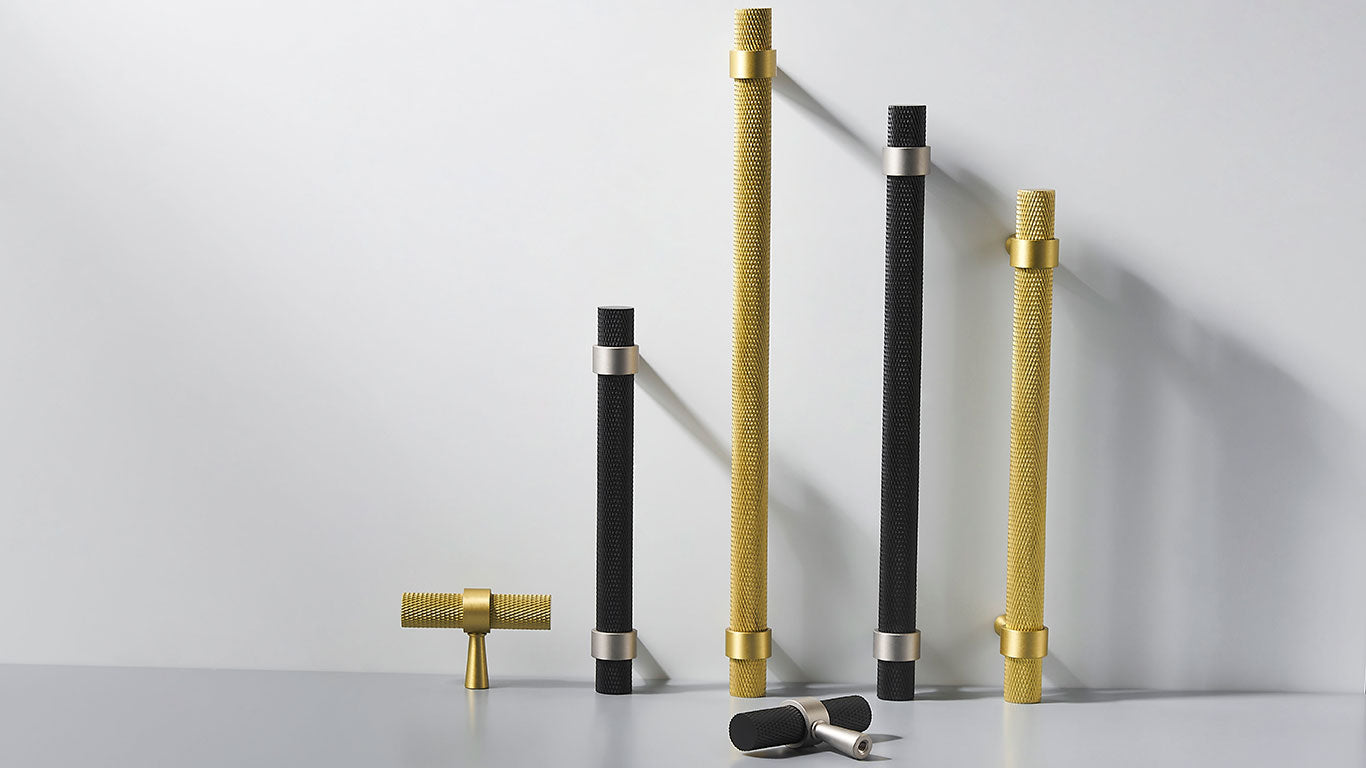 Eleganter Griff für Küchenschränke und Möbel aus massivem Messing mit gerändelter schwarzer Oberfläche und kontrastierender Befestigung in gebürstetem Nickel. Die einzigartige Kombination aus Schwarz und Nickel verleiht ein modernes industrielles Aussehen und bringt Charakter in Ihr Interieur. Dieser Griff ist darauf ausgelegt, Küche, Bad oder anderen Räumen eine exklusive und anspruchsvolle Note zu verleihen, wobei die tiefe schwarze Oberfläche wunderschön mit dem kühlen Nickelfarbton harmoniert. Die gerändelte Oberfläche bietet sowohl einen stilvollen Griff als auch ein dekoratives Detail, das den Griff zu einem auffälligen Designelement macht.