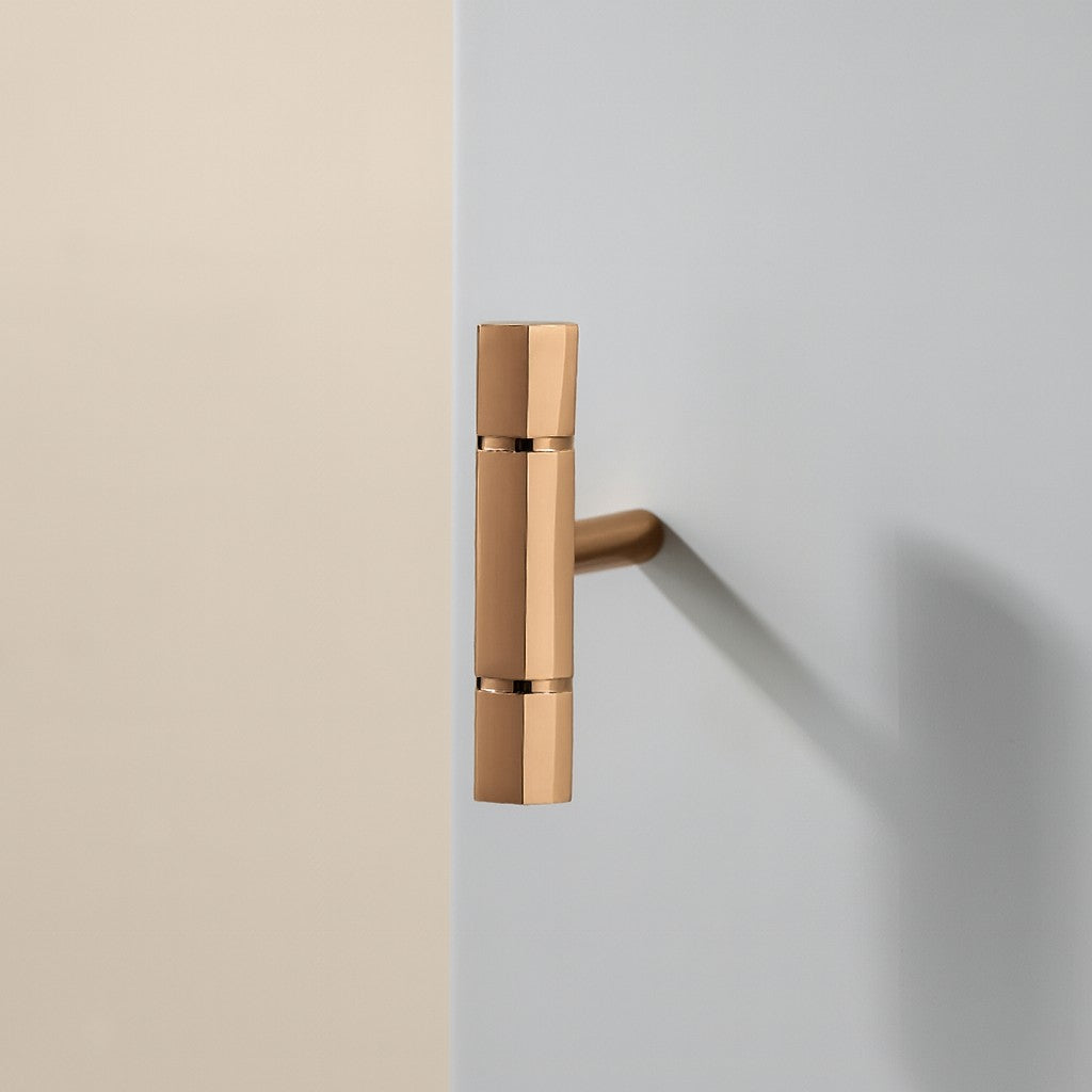 T-bar épurée en laiton massif avec une finition brillante, disponible en trois élégantes versions : Titane Noir, Chrome et Or Rose. Les poignées de la série 3109 adoptent un design moderne et minimaliste, alliant lignes épurées et finition exclusive.