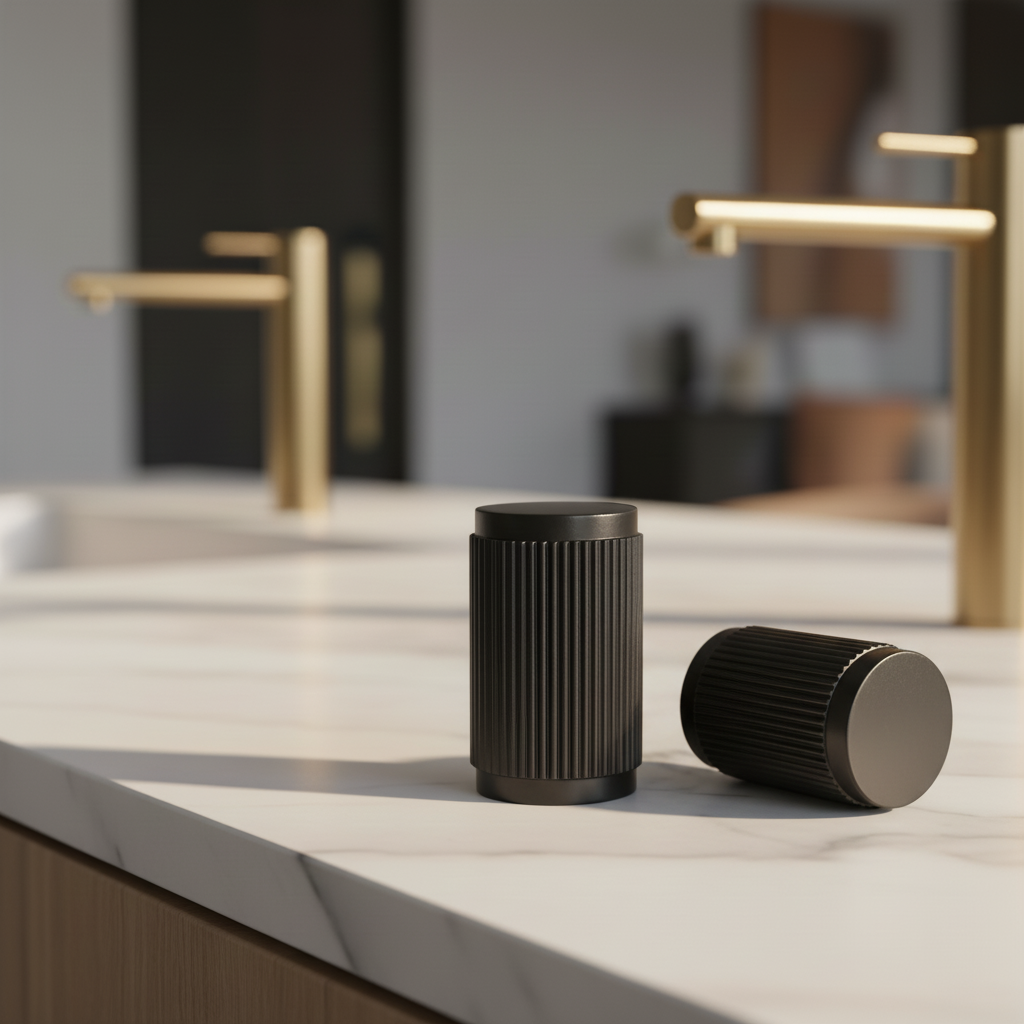 Pomolo in ottone massiccio con una combinazione di superficie spazzolata e zigrinata – un dettaglio distintivo che aggiunge carattere all’ambiente. Il design versatile si adatta perfettamente a ante da cucina, cassettiere in camera da letto o mobili TV. Per uno stile armonioso, abbinalo alle maniglie coordinate della serie 3100, disponibili nella sezione "Maniglie" del menu.