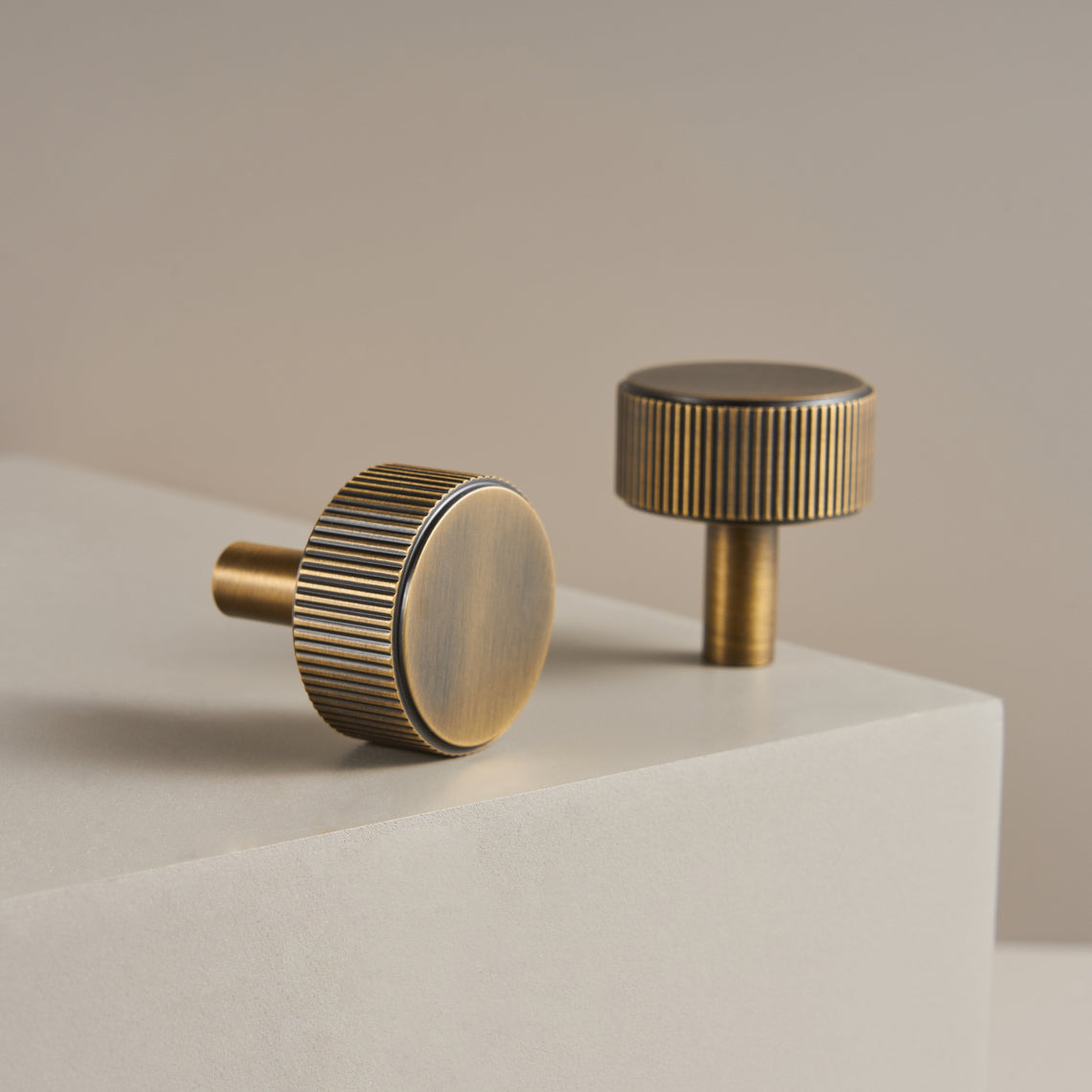 Podkreśl swoje wnętrze dzięki naszej ekskluzywnej gałce CH052 z solidnego mosiądzu. Żłobkowana powierzchnia nadaje jej nowoczesny i elegancki charakter, jednocześnie zapewniając wygodny uchwyt do mebli lub drzwi kuchennych. Dzięki trwałemu mosiądzowi i eleganckiemu designowi, ta gałka stanowi piękny detal w Twoim domu. Gałkę można połączyć z pasującymi uchwytami z tej samej serii, tworząc spójną i wyrafinowaną całość.