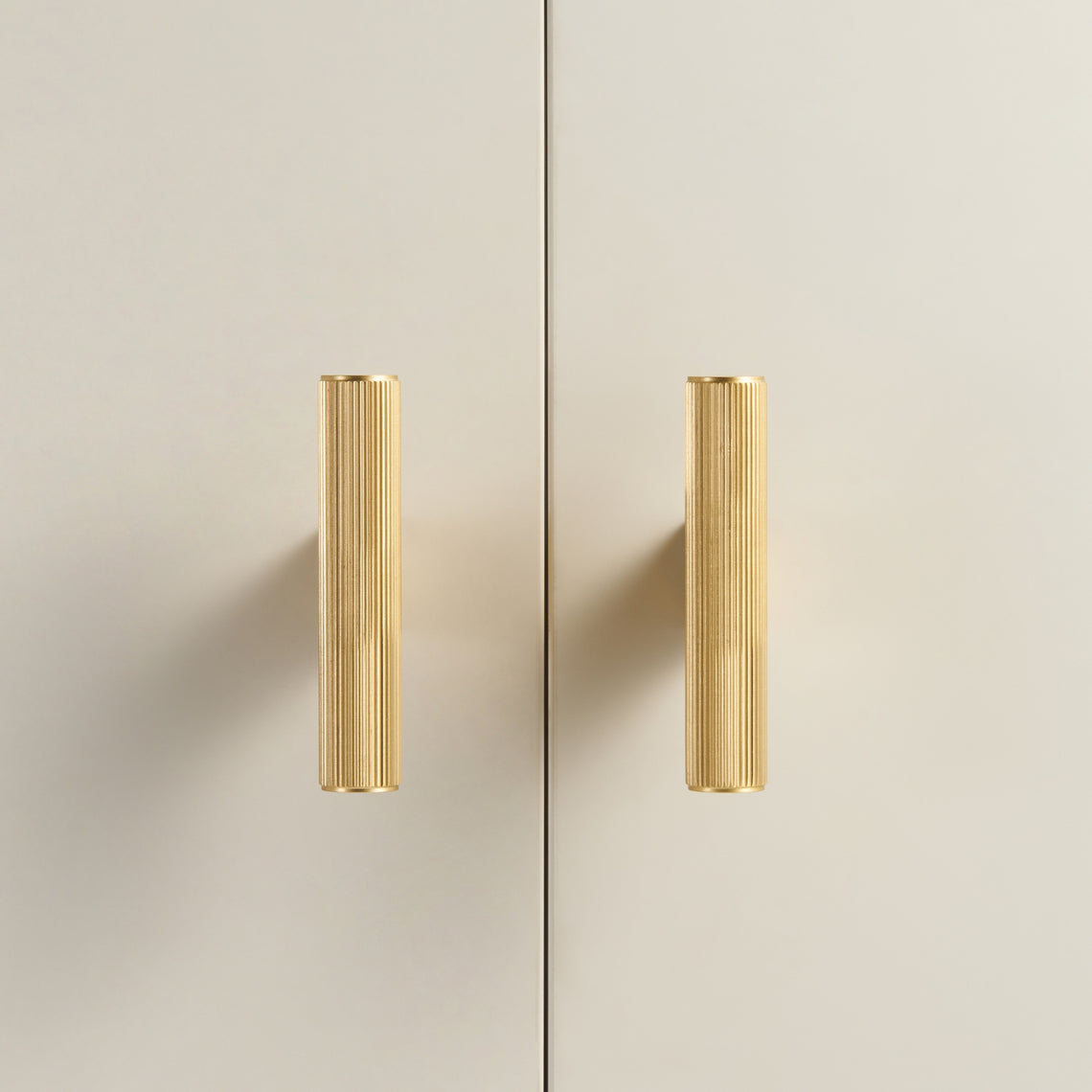 Nadaj swoim meblom lub frontom kuchennym nowoczesny i wyrafinowany charakter dzięki temu eleganckiemu uchwytowi z litego mosiądzu. Ta T-bar z moletowaną powierzchnią zapewnia doskonały chwyt i dodaje charakteru pomieszczeniu. Uchwyty te są idealnym wyborem dla osób szukających ponadczasowego designu z ekskluzywnym akcentem.