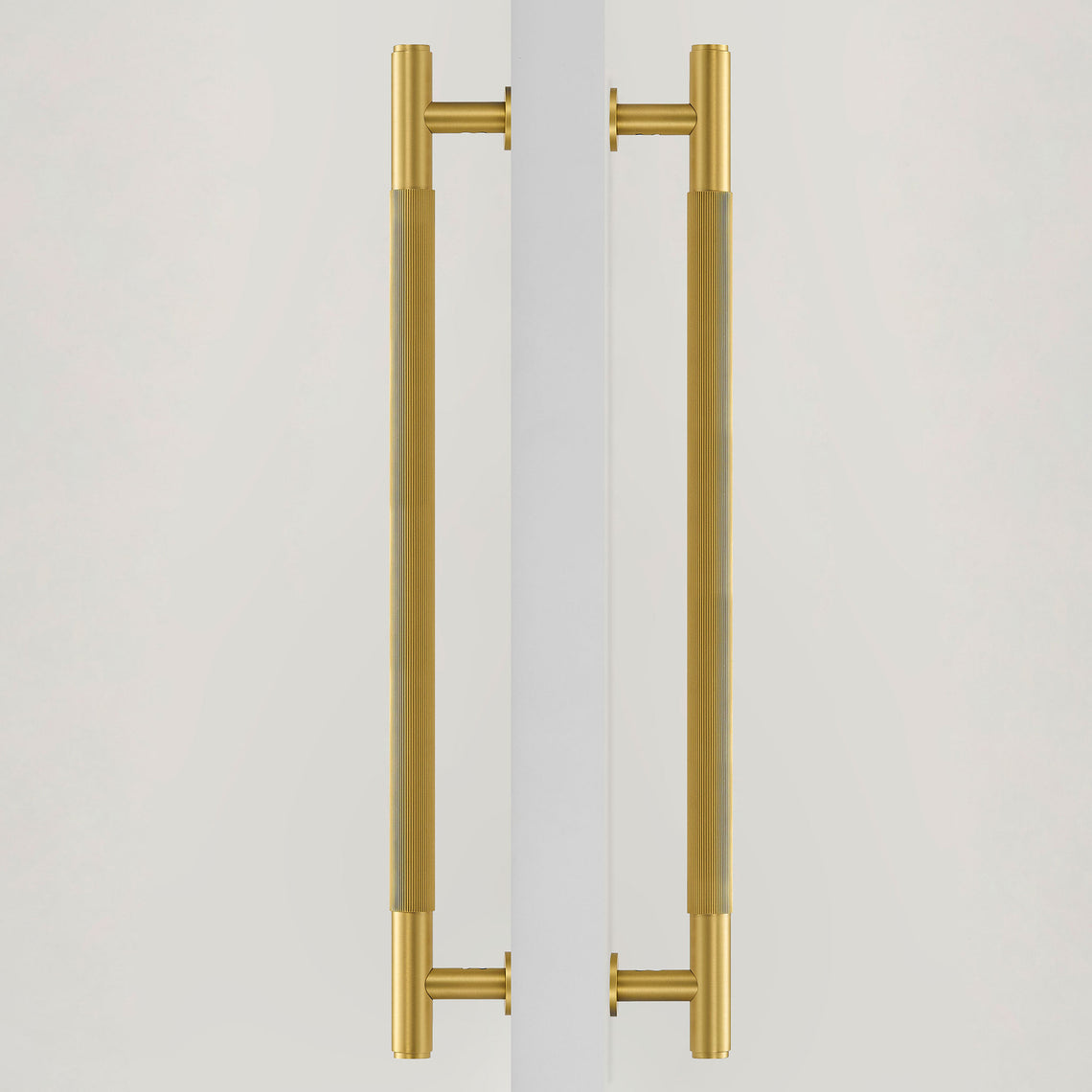 Pullbar z litego mosiądzu z rowkowaną powierzchnią. Nowoczesny i solidny uchwyt, idealny do zastosowania jako uchwyt do ścianki prysznicowej, garderoby lub podobnych miejsc, gdzie masz przejście z obu stron. Jego solidna waga w połączeniu z rowkowaniem nie pozostaje niezauważona. Uchwyt premium dla osób ceniących detale i jakość. Uchwyt wykonany jest z litego mosiądzu i sprzedawany w zestawie 2 sztuki, wraz z dołączonymi okuciami do montażu w drzwiach szklanych, drewnianych lub drzwiczkach o grubości 35-55 mm.