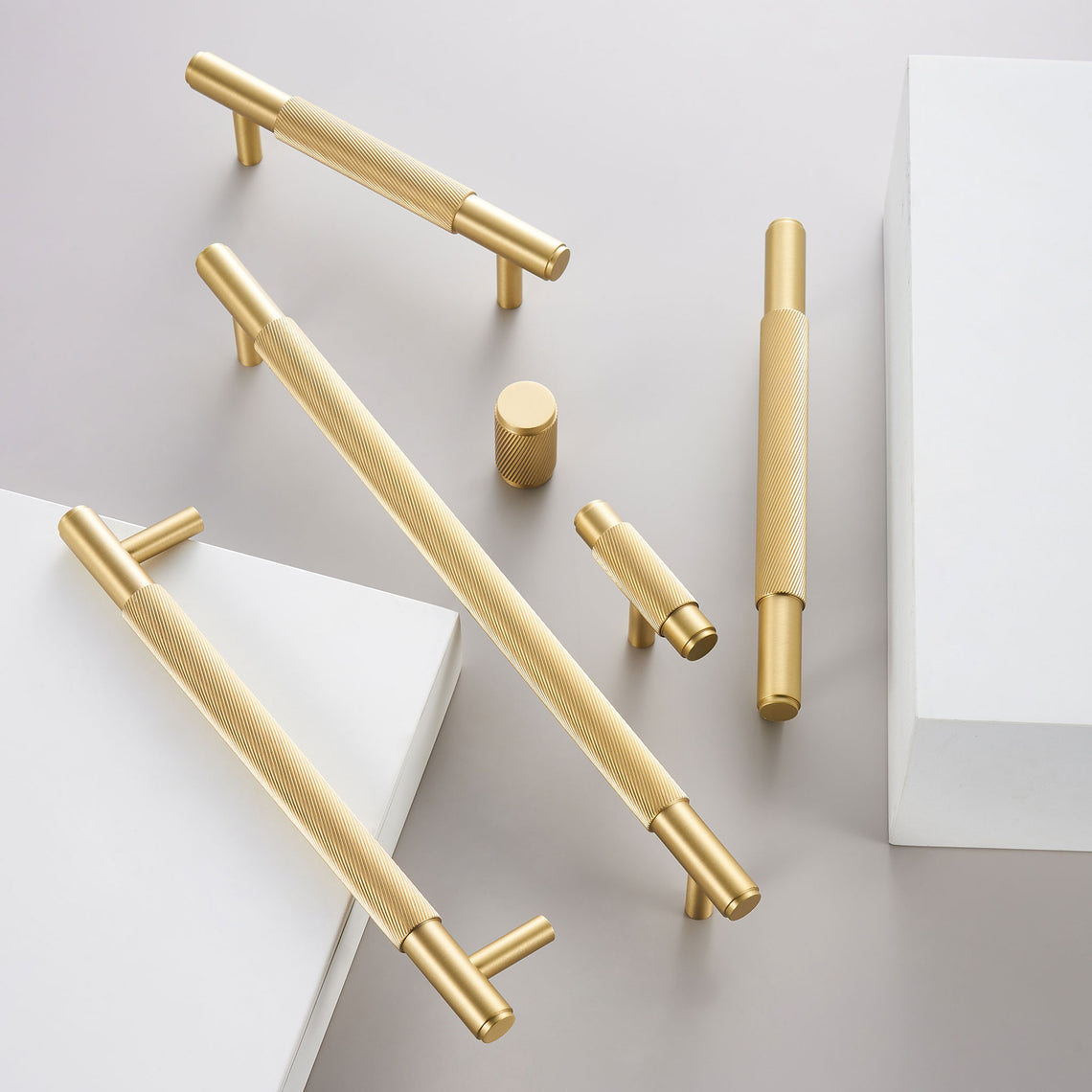 Detta moderna handtag i mässing kombinerar stil och funktion och är en perfekt lösning för köksluckor, badrumskommoder och möbler. Dess robusta tyngd och noggrant utformade räfflade detaljer ger en distinkt och exklusiv känsla som inte går obemärkt förbi. Detta premiumhandtag är utformat för dig som uppskattar kvalitet och en detaljrik design som höjer både utseendet och upplevelsen i ditt hem.